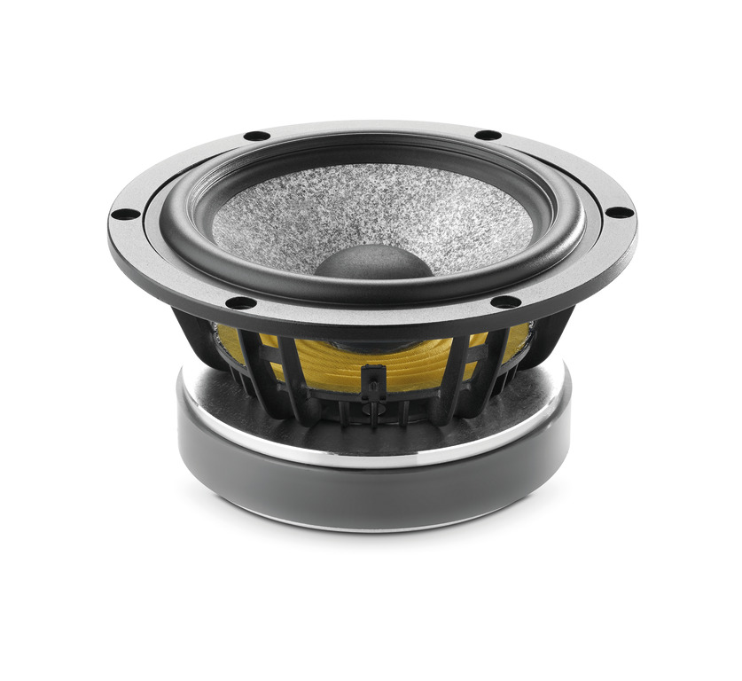 W サンドウィッチ・コンポジット・コーンはFocal社がフランスで製造し、周波数応答カーブを完全に最適化することが可能です。このコーンの軽さと剛性というユニークな特性は、素材内の信号伝達速度を制御します。構造用フォームの厚みを調節することで、コーンのダンピング品質を非常に正確に制御することができます。リスニング時には、完全なる音の透明性、非常に低い歪み率、優れた位相特性を作り出します。