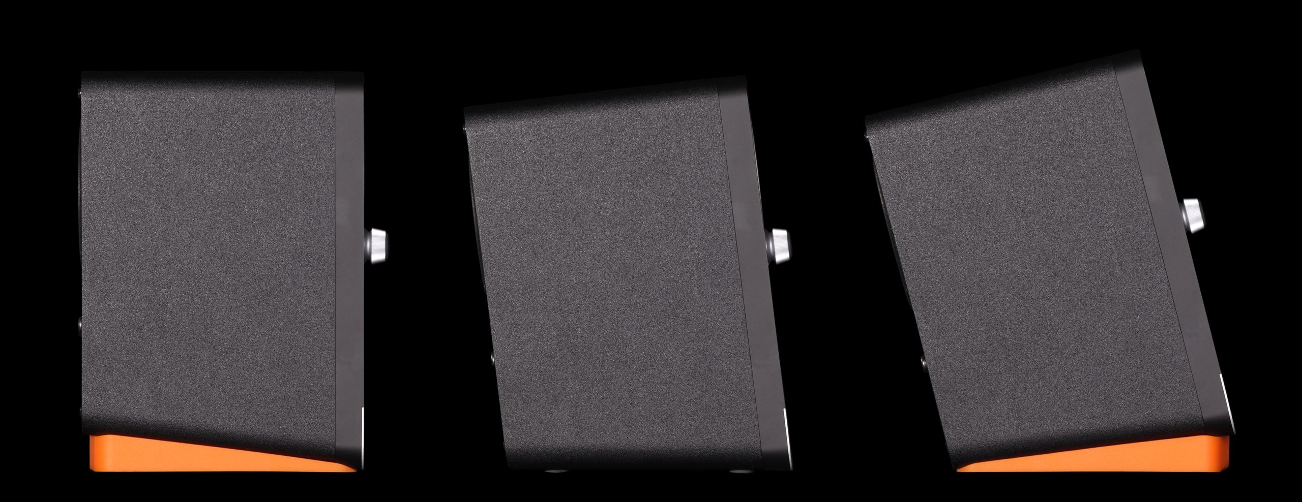 SC203には印象的なオレンジ色のスタンドが付属されます。これにより最適な角度で設置をすることが可能です。