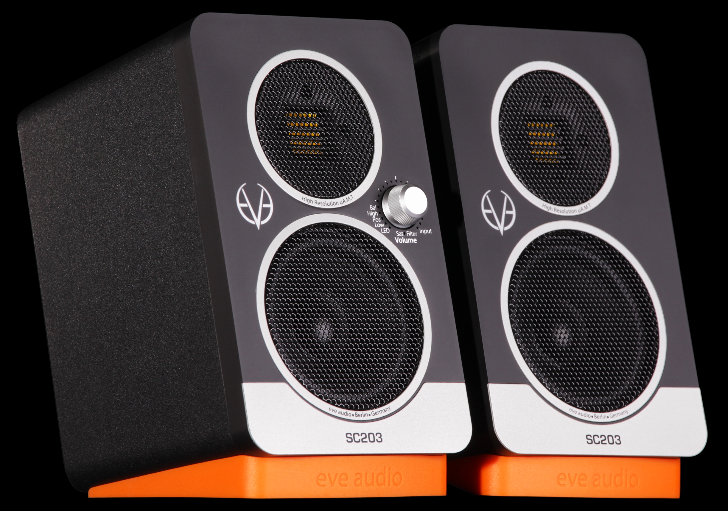 EVE Audioの代名詞ともいえるAMTツィーターもSC203のために独自に開発。高い解像度の高域再生を実現ています。SC203はRCAアナログ入力/光デジタル入力/USB入力に対応。独立したサブウーファー出力も搭載し、サブウーファーを追加することで2.1chシステムを構築できます。ハイクオリティな DSPも搭載し、設置環境に応じたフィルター調整も可能です。