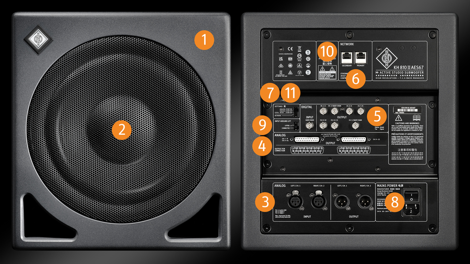 KH 810 II AES67は、中規模の部屋に最適なサブウーファーで、ノイマンの精度で低域を拡張します。最大7.1.4 のマルチチャンネルシステム用のユニークで柔軟で独自のBass Managerを搭載しています。最大11台のスタジオモニターに対応するアナログおよび AES3 出力 (BNC) とリダンダントAES67ネットワーク接続により、柔軟な接続が可能です。