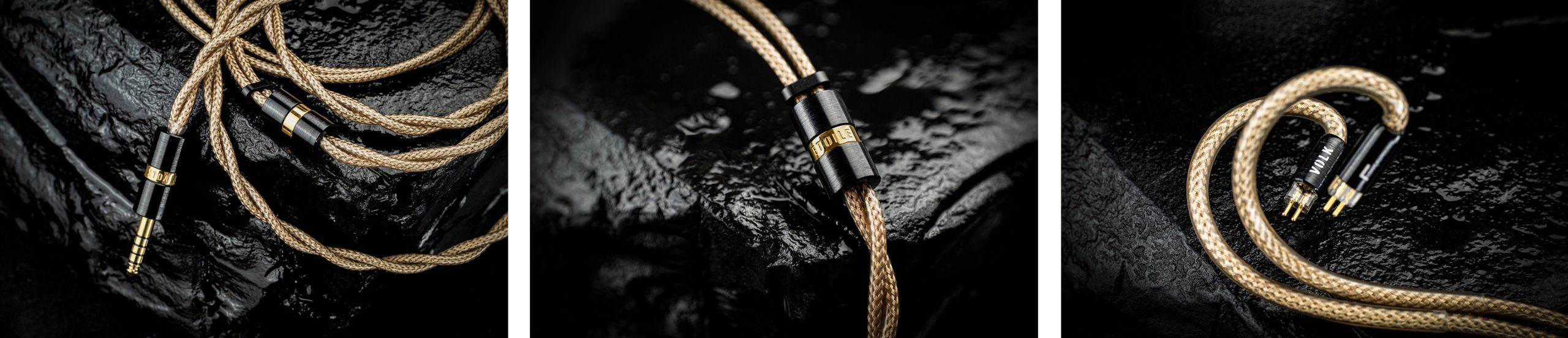 ETOILEに採用したプレミアムカスタムメイドケーブル「ARC」は、厳選された高純度導体のマトリックスから構築されています。単芯5N OCC銀、単芯4N銀、銀メッキ6N OCC銅、金メッキ4N銀、パラジウムメッキ4N銀を使用し、それぞれが電流の形成、インピーダンス制御、絶対的な信号完全性の維持において最適な特性を持つよう厳選されています。内部構造は精密に整合され、各ストランド、切断面、長さは対称性や位相整合性、電気的均一性を追求し調整されています。ハードウェアは6061-T6アルミニウムをCNC加工して使用。精密なブラッシュ仕上げと黒色アルマイト処理を施し、Y字分岐部と4.4mmバランスプラグ部には24K金リングを刻印。ケーブルは医療用グレードPVCで被覆し、手に馴染むしなやかさです。ARCはETOILEの信号伝送チェーンにおける最終リンクです。