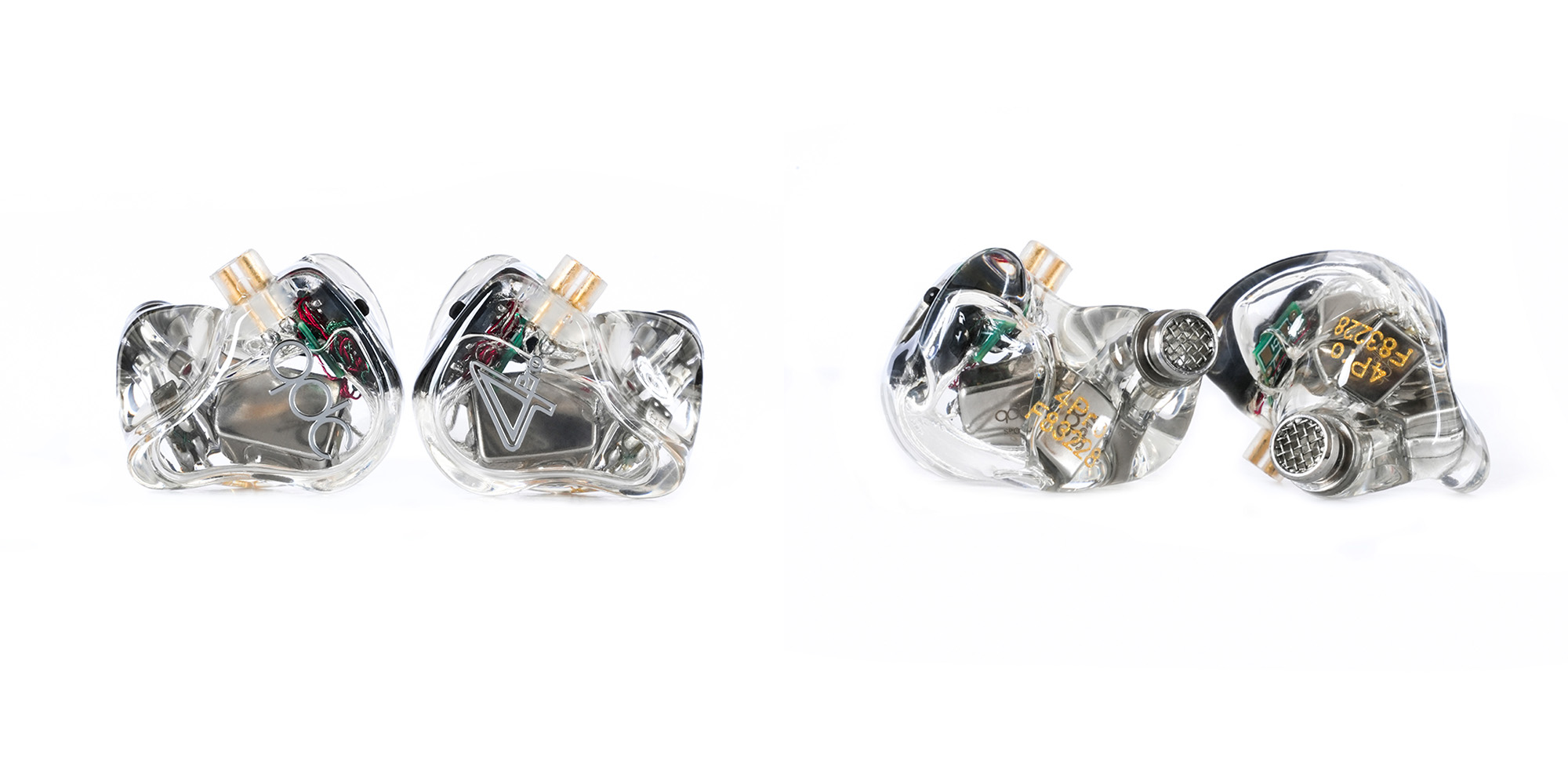 日本国内向け4Proは、日本限定デザインです。qdcならではの美しいシェル加工技術を体感頂くため、フルクリアのシェルとフェイスプレートを採用。シルバーのエッジと4Proロゴがアクセントとなりつつ、IEM本体の美しさをより際立たせます。