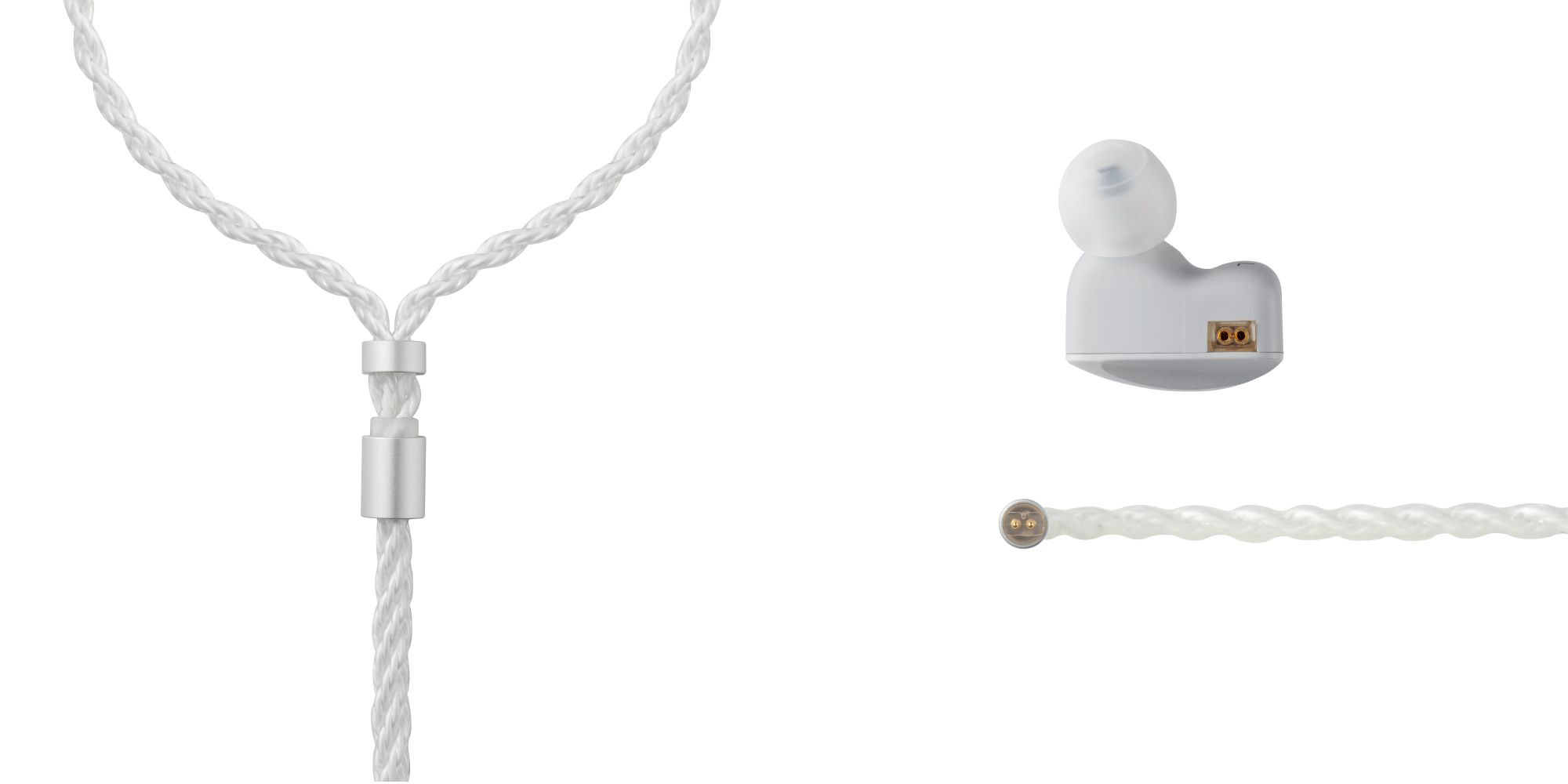 ケーブルには、優れた信号伝送性能を発揮する7芯銀メッキ銅線と無酸素銅線(OFC)を組み合わせたプレミアムハイブリッドケーブルを採用しています。緻密に編み込まれた構造と熟練の仕上げにより、耐久性とエレガントで洗練された外観を両立させています。また、コネクターにはケーブル互換性が高く、リケーブルが可能なカスタムIEM 2pinコネクター(0.78mm)を採用しています。