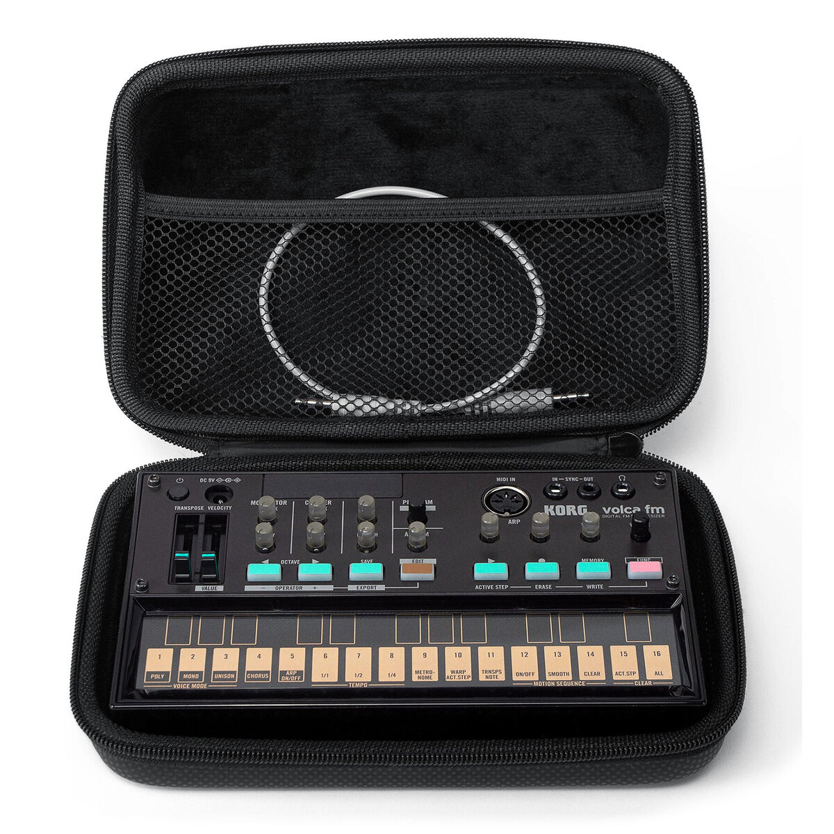 コルグのグルーヴ・マシンと手軽に接続できるシンク端子を装備しているので、他のvolcaシリーズやelectribe、SQ-1などのマシンと接続し、シーケンサーを同期再生してセッションできます。またスタンダードなMIDI IN端子を装備しているので、volca kickをDAWなどの音源モジュールとして活用可能です。