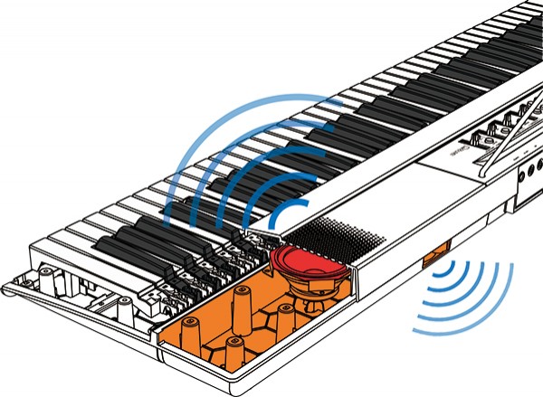 配信だけでなく、本体スピーカーからのサウンドも驚くほど充実。パネル面のスピーカーが音をダイレクトに届け、バスレフ構造がスリムなボディとは思えない低音を実現します。練習やちょっとした演奏も、生音だけで十分に楽しめます。