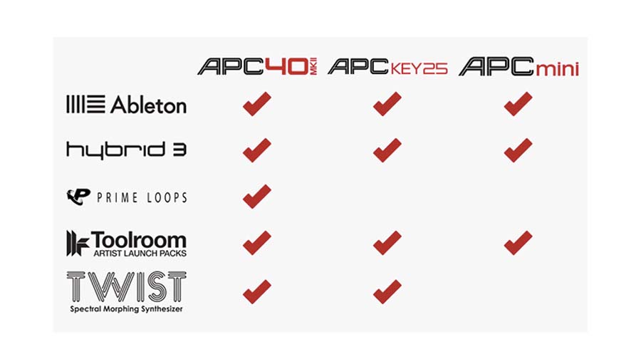 APC40 MKIIと、これらの制作ツールやバーチャル・インストゥルメント・プラグイン、サンプル&ループ集を使用することで、あらゆるプロジェクトに対応するプロフェッショナルな環境を提供し、必ずやあなたのインスピレーションの後押しするでしょう。