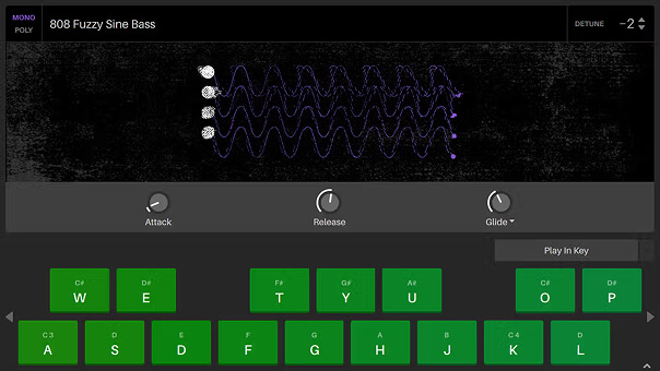 アタック、リリース、グライド、サステインを細かく調整でき、モノ/ポリボイシングにも対応しています。