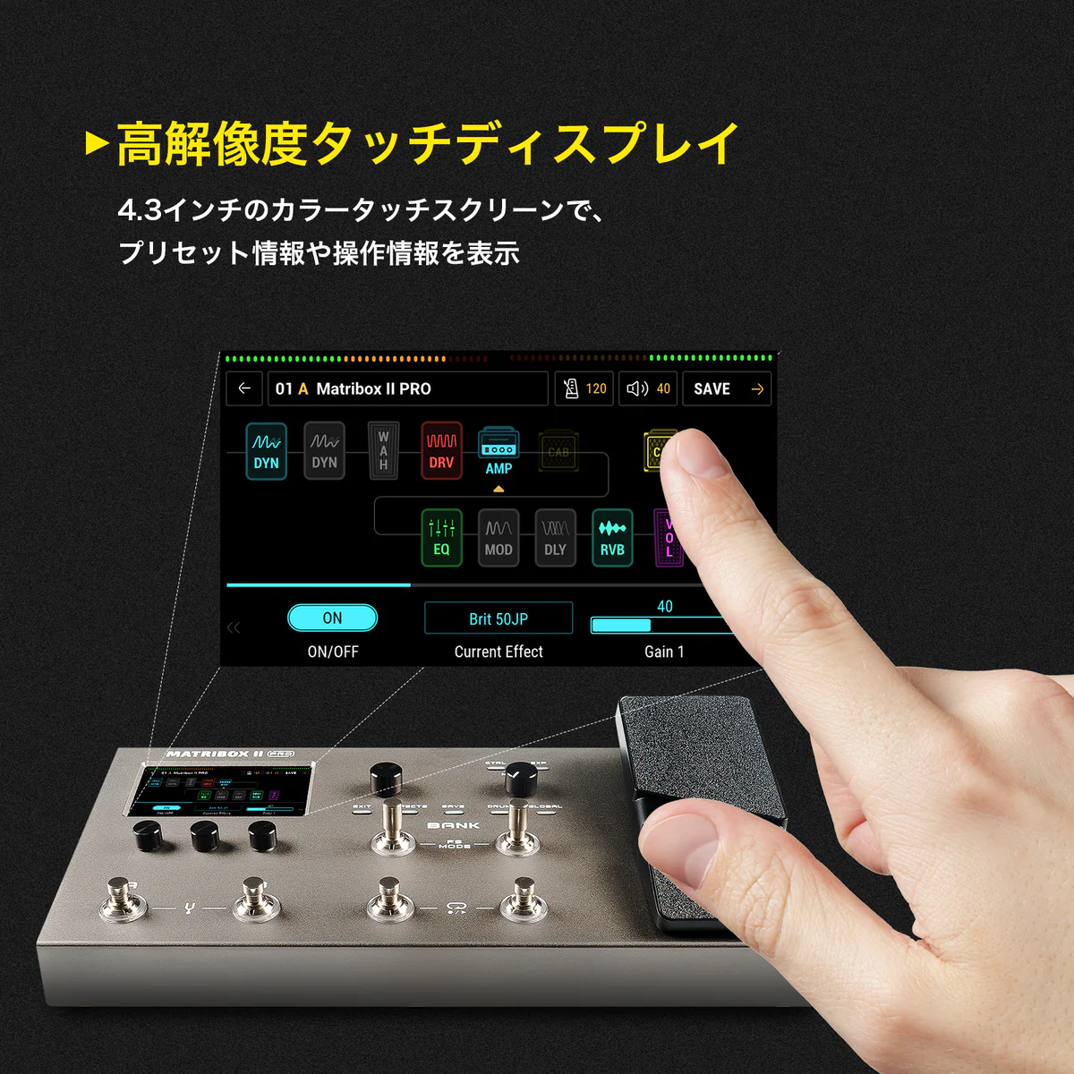 前世代の技術を受け継ぎながら、さらなる技術革新と品質向上を実現しました。新たに搭載されたタッチスクリーンにより、より直感的な操作が可能になり、追加されたペダルやインターフェースがさらなるコントロール性を提供します。新しいハードウェアプラットフォームとデジタルモデリング技術により、サウンドの細部まで完璧に再現。さらに高い精度、クリアさ、忠実度を実現し、あらゆる創作ニーズに応えます。使いやすいUIと操作しやすい大型カラータッチスクリーン搭載。頑丈なメタルシャーシとフットスイッチで耐久性もあります。