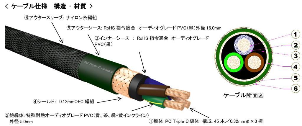 導体 | α PC Triple C導体(45 本/32 mm ∅)× 3cores |