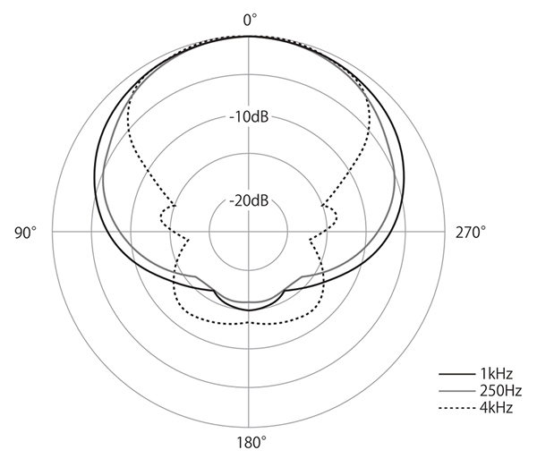 | 指向特性/感度 | 単一指向性 -32dB at 1kHz (0dB=1V/Pa) |