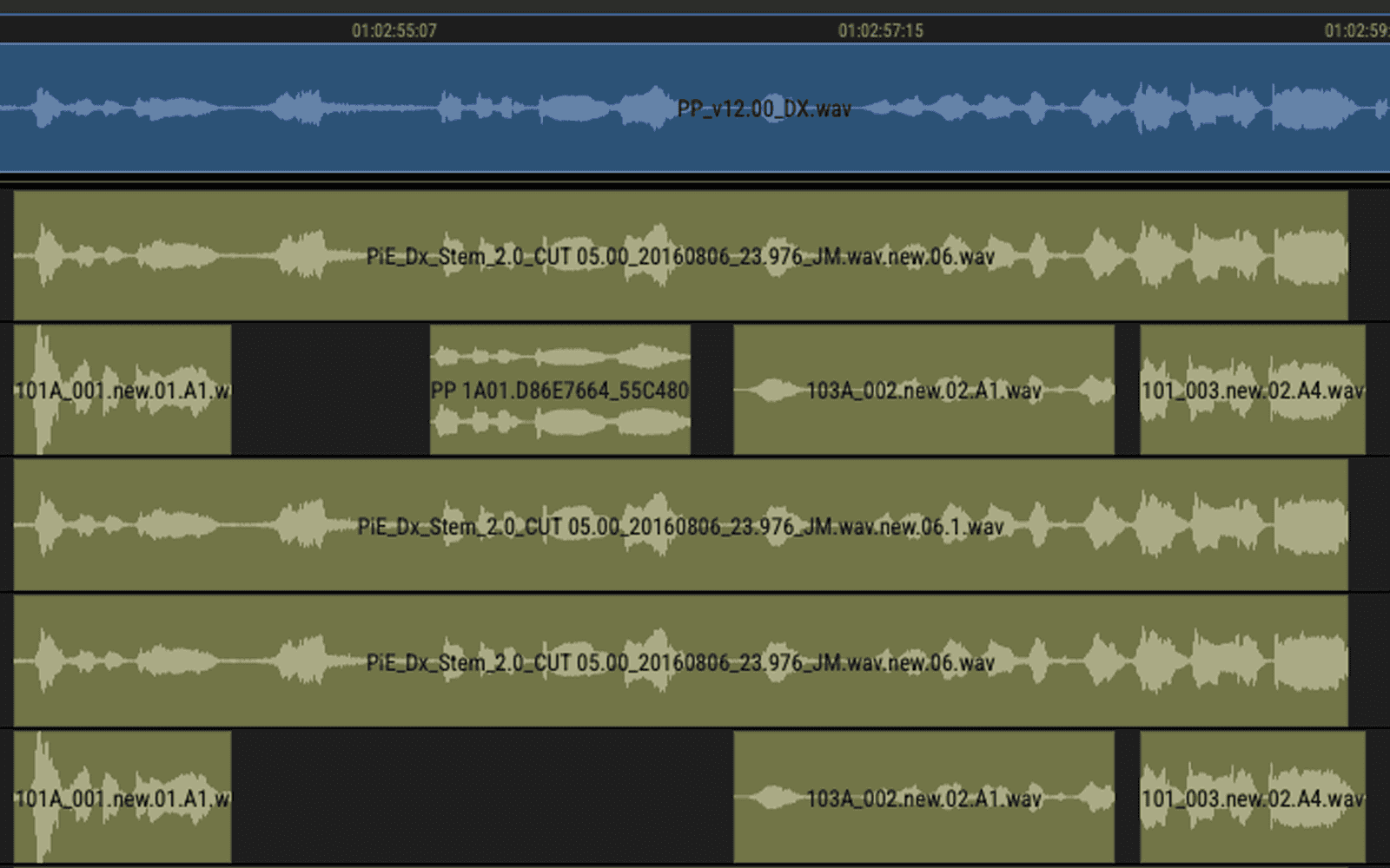 映像編集バージョンを比較するには、AAF、EDL、XML、変更ノートの他、実際のリファレンス動画ファイルやガイド音声等、Matchboxが対応している素材のいずれかを編集者から受け取っていれば十分です。 あとはそれらの素材を全てMatchboxに放り込んで、マッチするものが見つけられるかどうかMatchboxに確認してもらうだけです。 セリフのガイドオーディオやビデオトラック、オーディオトラック、リファレンスムービーファイル、またはそれらを任意に組み合わせて検索することができます。