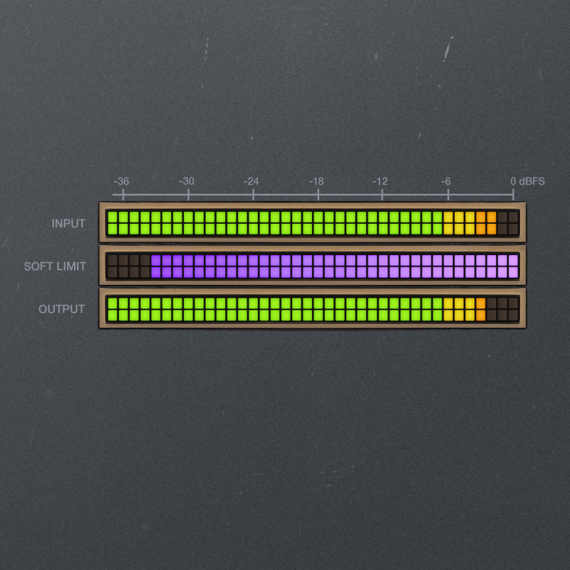 Soft Limitの正確なInput、Output、リダクションレベルのメーターで、Soft Limitがどのようなサウンドを形成しているかを正確に表示します。