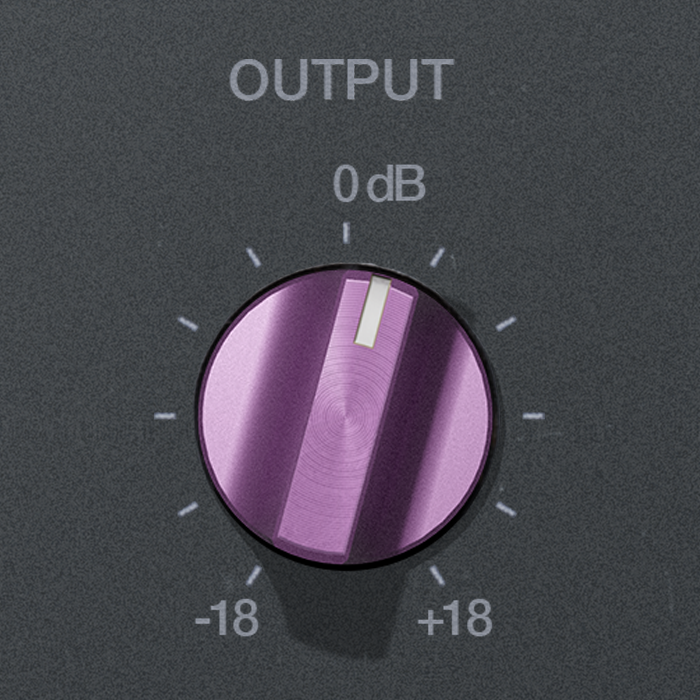 Outputノブで±18dBのトリムが可能です。プラグイン出力をDAWの次のステージに最適化することができます。