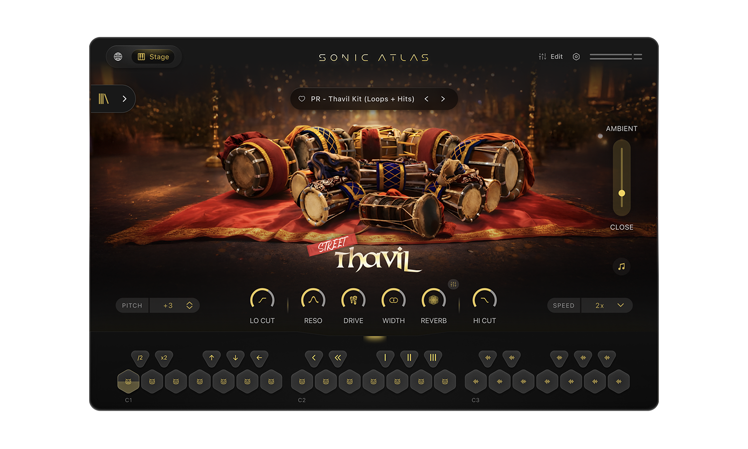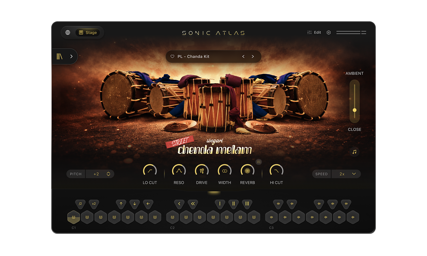 Singari Chenda Melamキットは、南インドの儀式用パーカッションの伝統を捉えた、スピード感あふれるハイエナジーな音色です。明るく切れ味の良い音色、鋭いトランジェント、そして緊密に絡み合ったグループ演奏が特徴的なこれらの楽器は、伝統的な祭事で演奏され、ミックスの中でも際立つ、パワフルでリズミカルなエネルギーを生み出します。