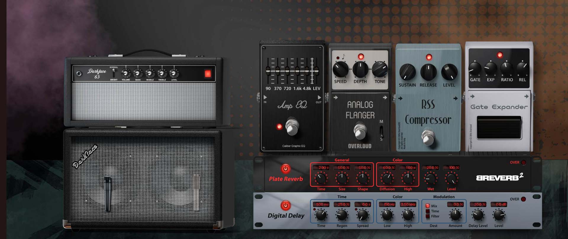 THU Glen Drover には、プラグインのトーン機能を拡張する、次のようなエフェクト、アンプ、キャブの完全なコレクションも含まれています。