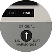 生成される倍音の量を調整できます。元の動作と比較して倍音の量を増減し、メーターでその量をモニタリングできます。