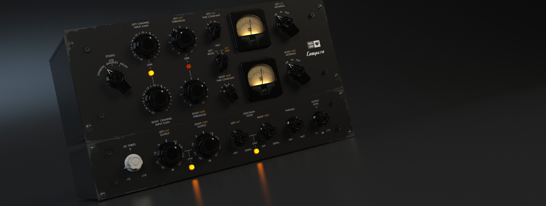 Comp670は、非常に希少な伝説の真空管コンプレッサーをOverloudが再現したものです。シグナルチェーンに多数のトランスフォーマーを搭載することで、非常に温かみのある独特のトーンを実現しています。