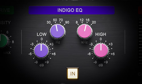 Indigo EQは、位相シフトを最小限に抑えた2バンド・シェルビングEQです。フィルターは厳選された周波数カーブと位相カーブを備え、低域の重みと高域の輝きを素早く調整できる、音楽的で直感的なEQです。