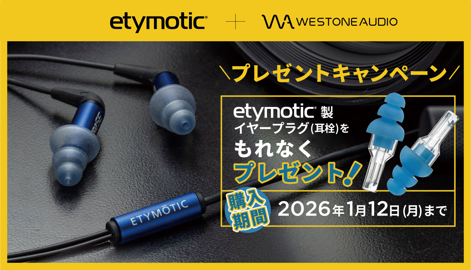 EtymoticまたはWestone Audioの対象製品をご購入・ご応募いただくと、Etymotic製イヤープラグをプレゼント!