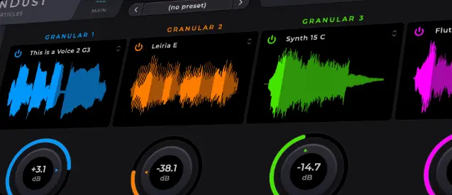 GrainDustは、完全に独立した4つのグラニュラー・レイヤーを備える、強力なプラグイン・シンセサイザーです。