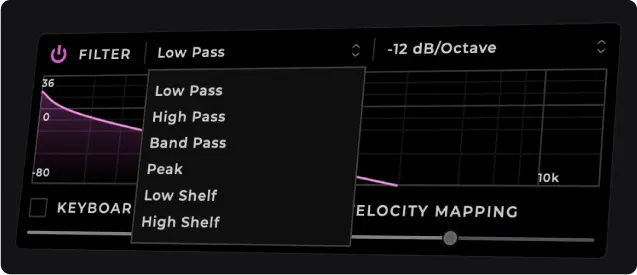 ローパス、ハイパス、バンドパス、ピーク、ロー/ハイ・シェルフなどを装備
