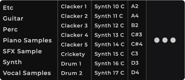 各パートに自身の音声サンプルをインポート、または1200以上の付属サンプルから選択