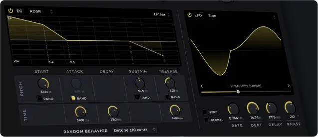 70以上の波形モディファイアを備えたEGとLFOが、各レイヤーで使用可能