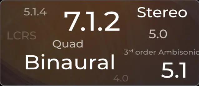 ステレオ、5.1ch、7.1.4ch、バイノーラル、Ambisonicsなど、多数の出力フォーマット