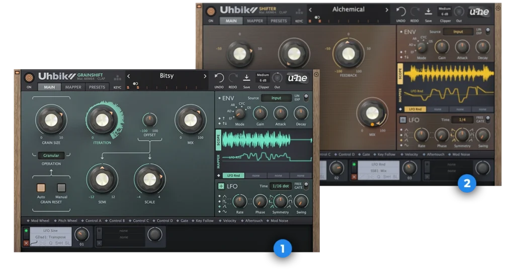 マルチチャンネルトラック上で使用すると、Flanger、Phaser、Grainshift、Tremoloなどのモジュールは、全アクティブチャンネルを横断してモジュレーションを生成。まるで音がリスナーの頭の周囲を回り込むような空間モーションを実現します。