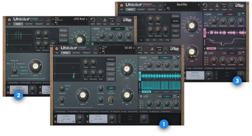 また、Flanger、Phaser、Tremolo各エフェクトには主要パラメーターに直結した専用LFOを搭載。わずかな揺らぎから大胆なモーションまで、音のキャラクターを自然に動かし、有機的な変化を生み出します。