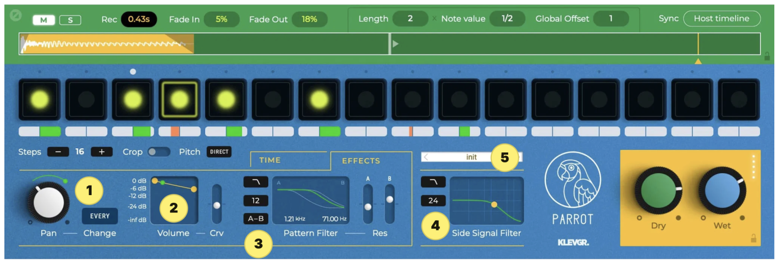 2. Parrotの上部セクションは入力に関連するすべてを処理します。自動的な連続スニペットサンプラーとして捉えてください。