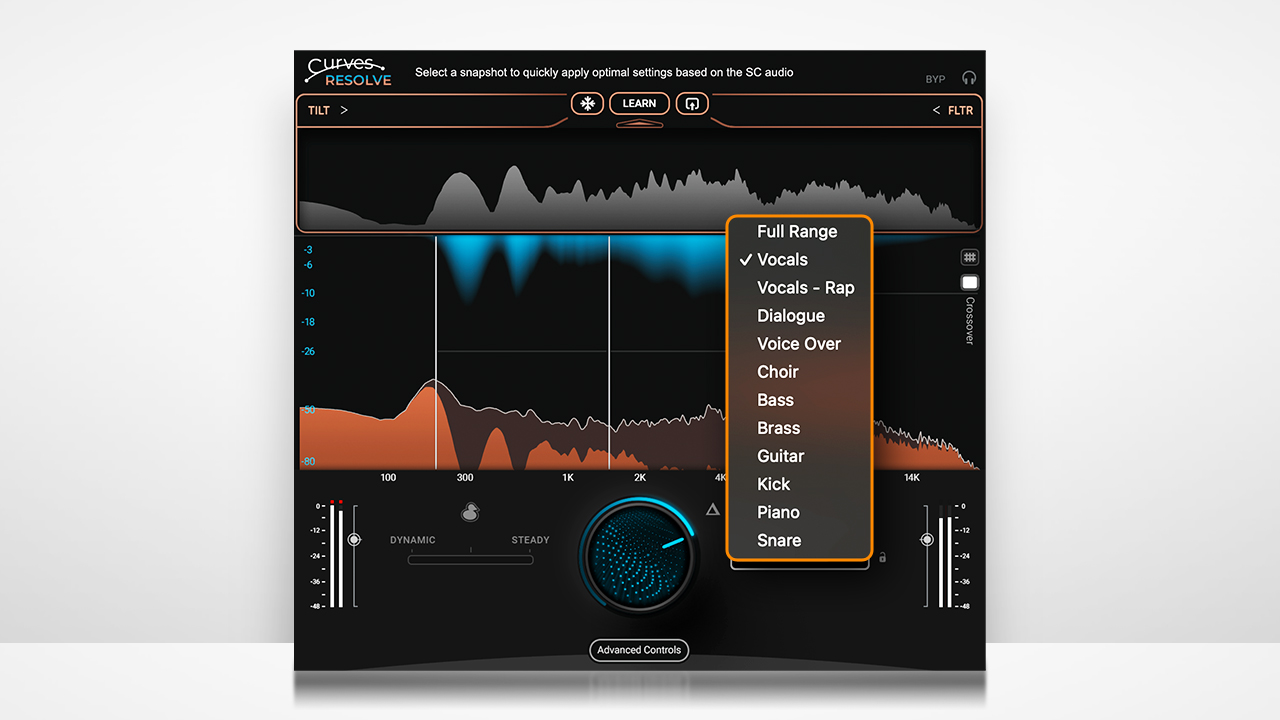 Curves Resolve は、そんなトラック同士の“衝突”を自動で解消する革新的なプラグインです。あるトラックを、別のトラックを“聴きながら”処理することで、周波数がぶつかるポイントだけにスペースを作ります。
