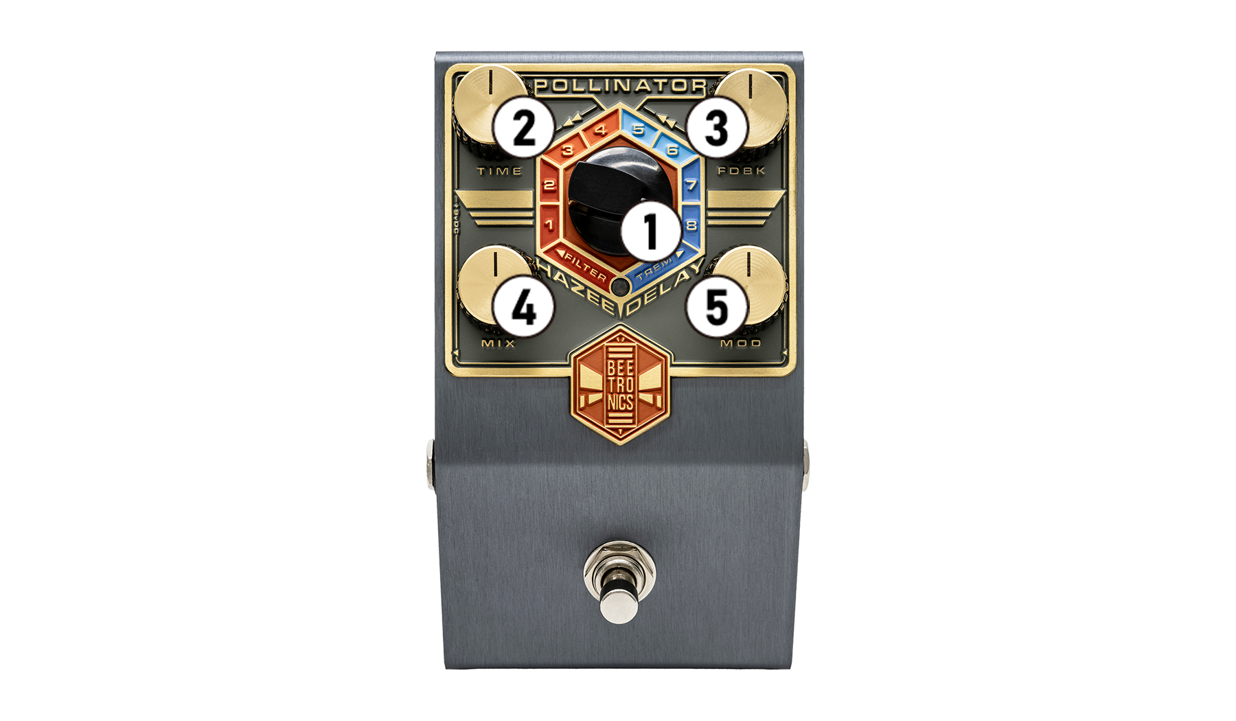 Pollinator Hazee BeeはBEETRONICSでは初めてのフルデジタルBEEです。これまではアナログ回路をデジタルコントロールするデザインを採用していましたが、このペダルはオーディオ信号もデジタル処理しています。これによって、アナログの領域では不可能だったサウンドを生み出すことができるようになっています。
