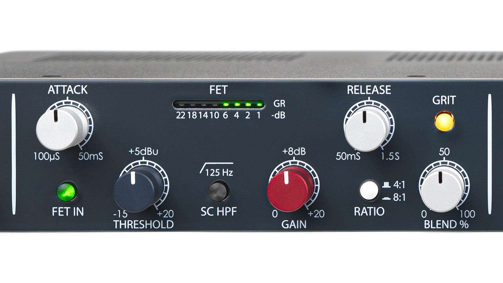 そして、独自の GRIT モードが OptoFET の創造性を一層拡張します。このモードでは FET コンプレッサーが強力なウェーブ・シェイパーへと変貌し、高域にフォーカスした豊かなハーモニック・ディストーションをもたらします。