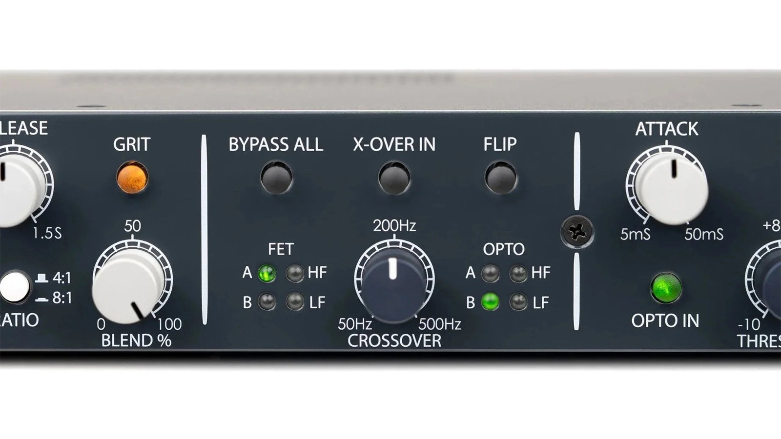 FLIP ボタンを使えば、デュアル・ステージ・モード時における2つのコンプレッサーの直列順序を瞬時に変更できます(FET > OPTO または OPTO > FET)。