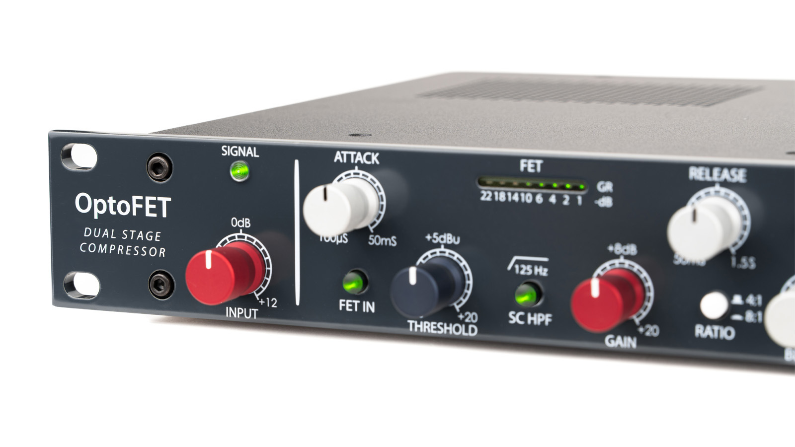 OptoFET は、トラッキング、ミキシング、マスタリング、サウンドデザイン、そしてツアーに特化しており、ソースのダイナミクスと音色を自在にコントロールできます。
