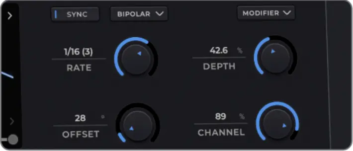 各スピーカーに異なるLFOオフセット値を適用して、面白い音響効果を生成