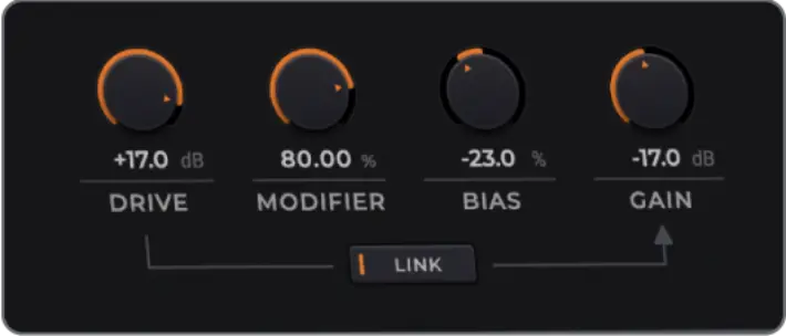 ドライブ、ゲイン、モディファイアなどのパラメータを精細に調整