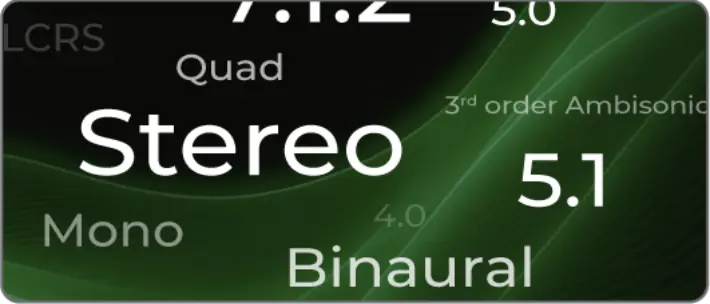 モノラルからSONY 360RAのようなイマーシブ・フォーマットまで、主要な出力をサポート