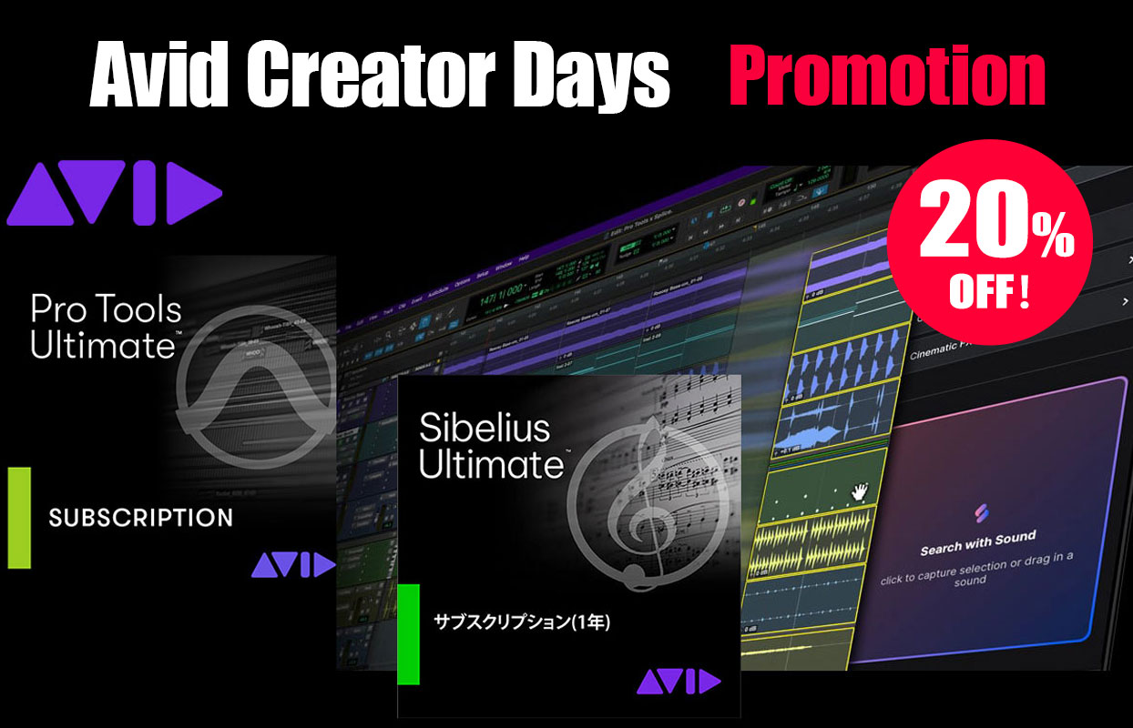 AvidのPro Tools/Sibelius/Media Composer Ultimate年間サブスクが20%OFFになる「Avid Creator Days」プロモーションがスタート!