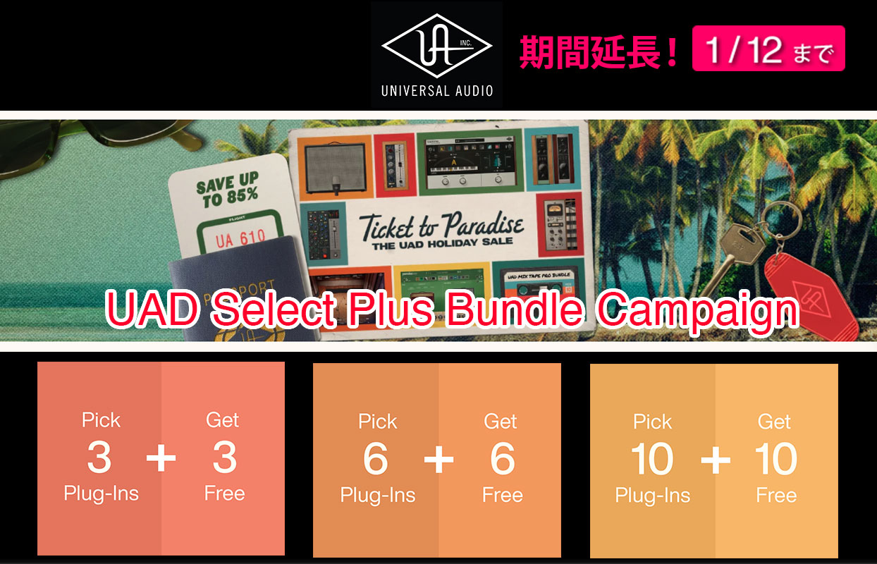 Universal Audio Holiday Saleの新たなラインナップとして「UAD Select Plus Bundle」キャンペーンが、1月12日まで期間延長!