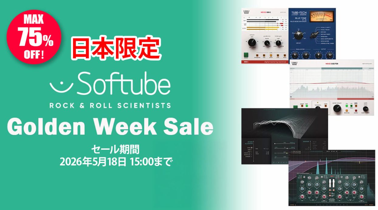 幻想的なシマーリバーブを搭載したDimentions、ボーカル、ギター、ドラムなど各種プリセットを備えた使い勝手のいいTube-Tech Blue Tone、クリアなサウンドで人気のマスタリングツール、Weiss MM-1、Exciter、現代的なワークフローにヴィンテージEQを融合させたEqualizersなどをピックアップがセール期間中、最大75%OFFの特別価格でご提供します。