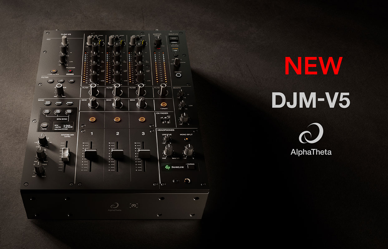 AlphaThetaが、DJM-V10の設計思想を受け継いだ次世代3chDJミキサー「DJM-V5」を発表しました!