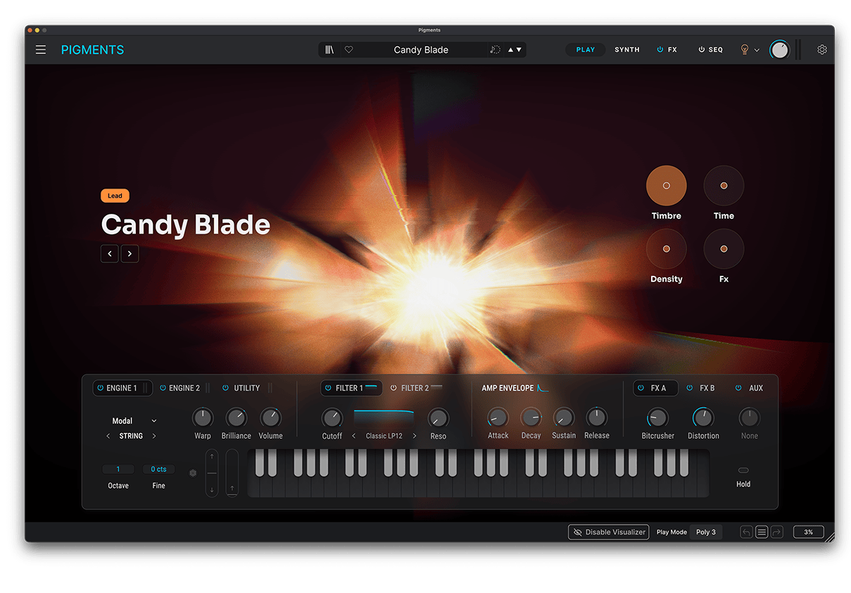 再設計されたPlay View Pigmentsの視覚的なサウンドデザイン力を最大限に活かした、独自で洗練された新しいUIを体験できます。Play前にサウンドの特徴を即座にプレビューし、音色変化を視覚的に確認できます。