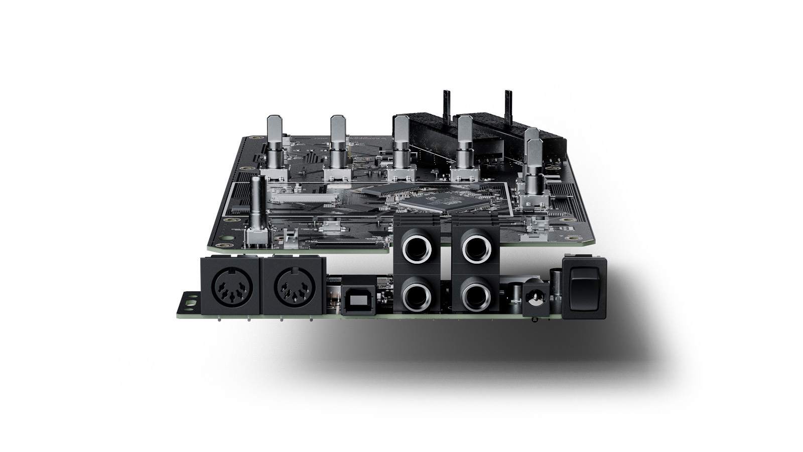 Osmose を MIDI コントローラーとして使用することで、お気に入りのシンセサイザーの潜在能力を引き出すこともできます。リアパネルに搭載されたMIDI IN / OUT と USB ポートを使えば、あらゆるソフト/ハードウェアシンセサイザーとの接続が実現します。もちろん、ポリフォニックアフタータッチやMPEに対応していないシンセサイザーでもコントロール可能です。