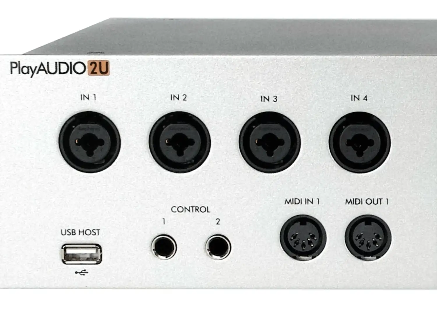PlayAUDIO2Uはステージ向けに設計されたオーディオ入力を提供し、待機時は無音状態を維持、広いダイナミックレンジによりあらゆるディテールを明瞭に捉えます。4つのXLR 1/4インチTRSコンボ入力端子は、高品位マイクプリアンプと48Vファンタム電源を装備し、ボーカルや楽器の音を色付けや劣化なくクリアに収録します。音声や楽器音などをシームレスに処理するため、冗長構成のパフォーマンス用コンピューターへ最小レイテンシーでオーディオを送信します。