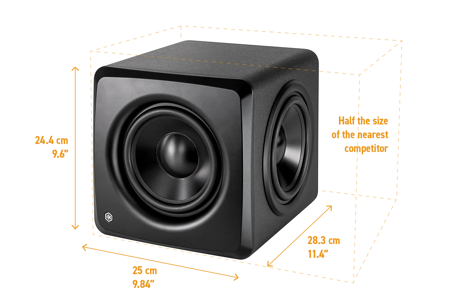 iLoud Subは、空間との完璧なバランスを保ちながら、フルレンジの明瞭さと深みのある低域を実現するように設計されています。従来の同クラスのスタジオ用サブ・ウーファーと比較して、サイズは圧倒的に小さく、設置場所に悩むこともありません。