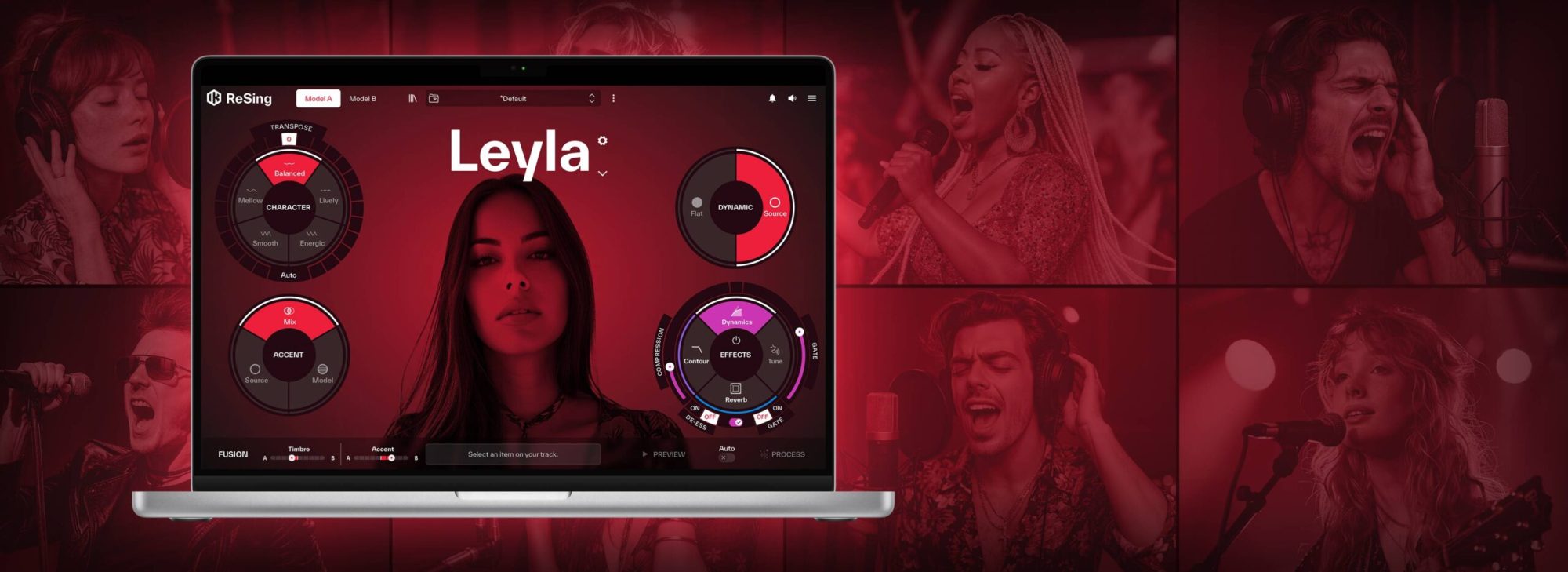 ReSingを使えば、仮歌トラックを表現力豊かなプロ品質のボーカル・トラックに置き換え、音楽的に調整することができます。最新のAI技術を使ったReSingは、倫理面に配慮しながら収録された実在アーティストの声、音色、トーン、表現を捉えた音声モデルにて、ライブ録音セッションと見分けがつかないほど自然なボーカル・トラックを提供します。