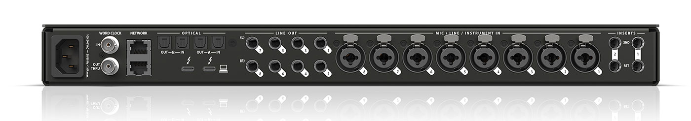 -114 dB THD+N、118 dBのダイナミックレンジ、-129 dBu EIN性能により、レコーディング素材を最も忠実かつ自然な形でキャプチャーします。各マイクチャンネルには個別プリアンプゲイン、パッド、48Vファンタム電源を搭載し、コンピューターやiOSデバイスからのリモートコントロールが可能。各コンボジャックは、DIトラッキングやリアンプ用に1/4インチのハイインピーダンスTSギター入力を交互に提供します。