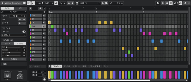 Cubase 14で搭載されたパターンエディターに新たにメロディックモードが搭載。